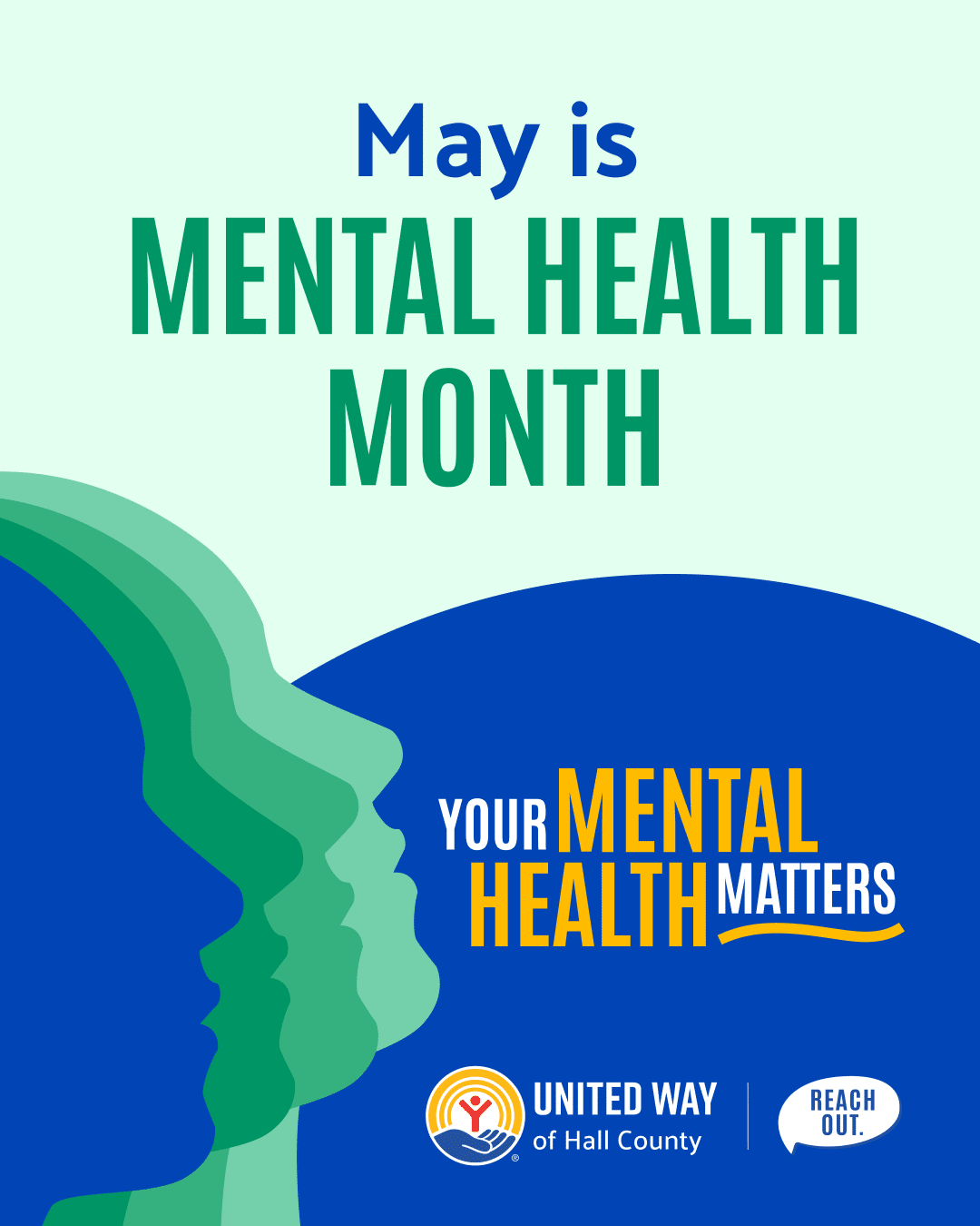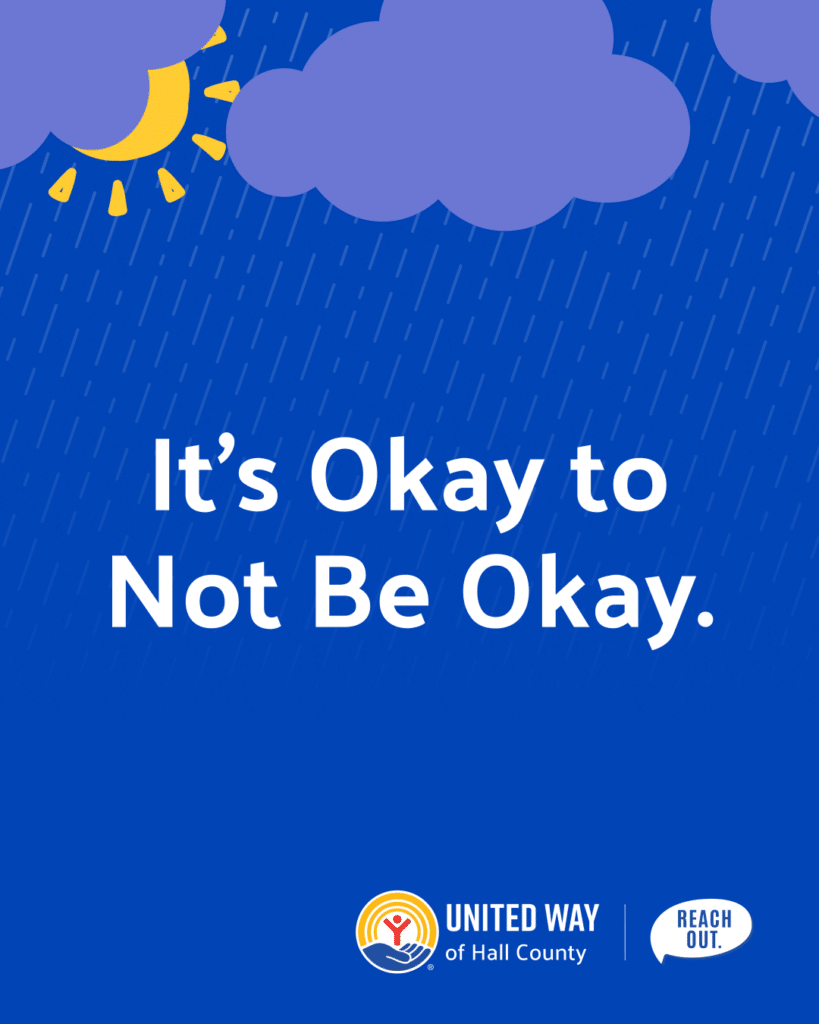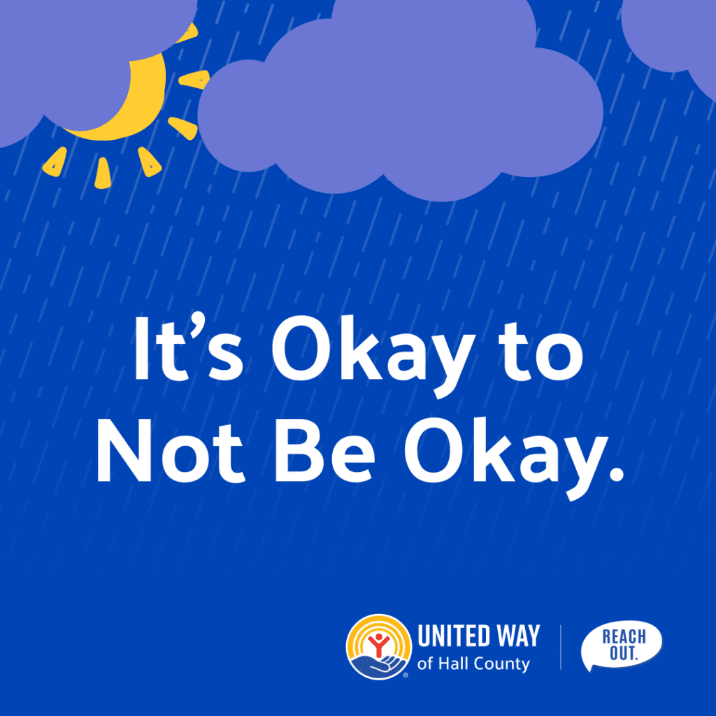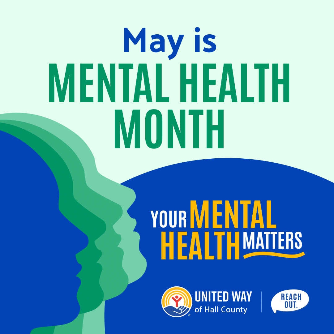 In our Mental Health Month social media tool kit, we’ve provided cover photo and profile image graphics, along with sample images and captions that you can use as is, or feel free to spread the message in your own voice and style. We also encourage you to share any content shared on Reach Out Hall County’s Facebook page or Instagram feed.